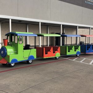 This Trackless Train Rental has grown from a want to a must have for you parties in Dallas, Allen, and nearby cities in Texas!!! Our Trackless Trains can run indoors or outdoors. We have an electric trackless train that can run indoors at any venue with absolutely no emissions. Trackless train rentals are forever timeless …