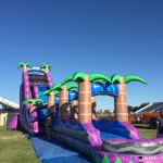 The 27ft Purple Crush Water Slide will be sure to be at the top of your list for any birthday, church or school event! First, you climb up 27ft and plunge down the slide into a slip-n-slide for a total of 70ft. and finish into a cool pool of water! Any age can have fun on this slide!